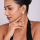 The Rose Quartz Aurora CZ Drop Danglers showcase a beautiful harmony of sparkle and softness. Featuring a radiant cluster of high-quality cubic zirconia stones at the top, the design flows into a natural rose quartz faceted drop, admired for its gentle blush hue and elegant translucence. Crafted in 925 Sterling Silver and finished in silver and rose gold tones, these danglers add refined charm and graceful movement to both festive and evening look.